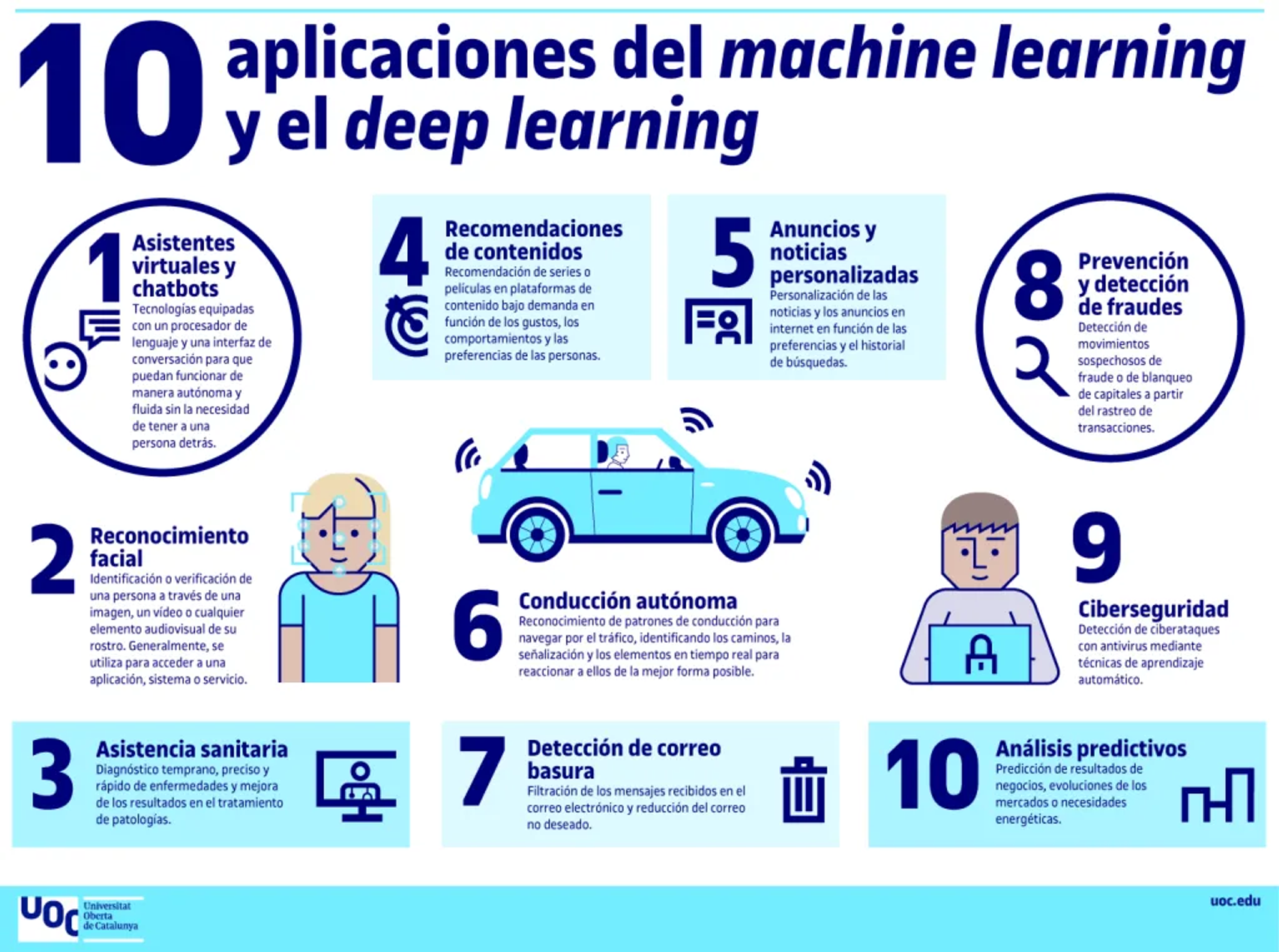 Ejemplo de las aplicaciones cotidianas del deep learning. Fuente: https://blogs.uoc.edu/informatica/es/machine-learning-vs-deep-learning-diferencias/